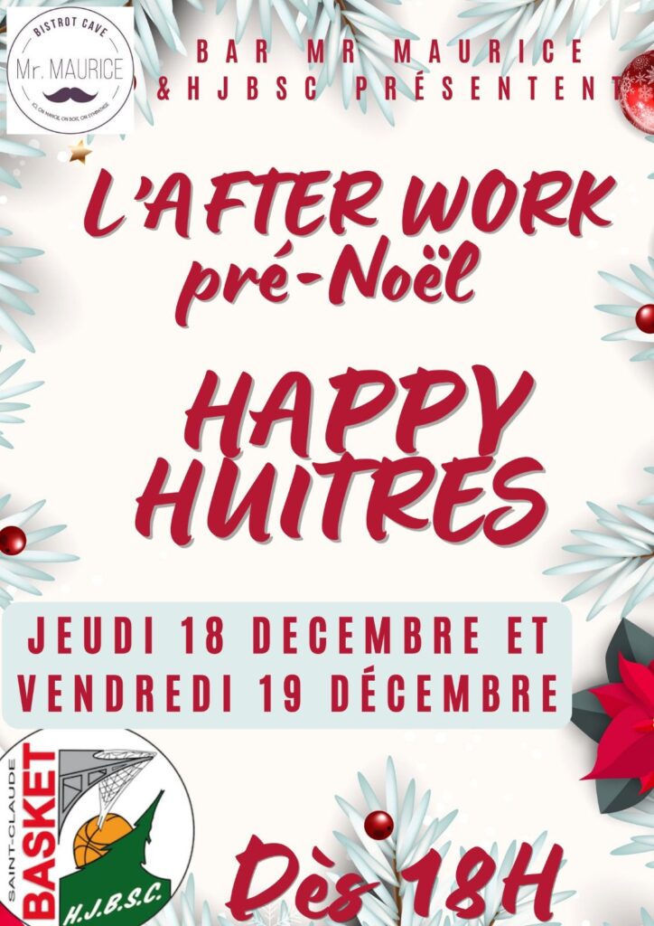 Le club vous attend pour 2 soirées huîtres au bar Mr MAURICE à Saint Claude le jeudi 18 et le vendredi 19 décembre.
