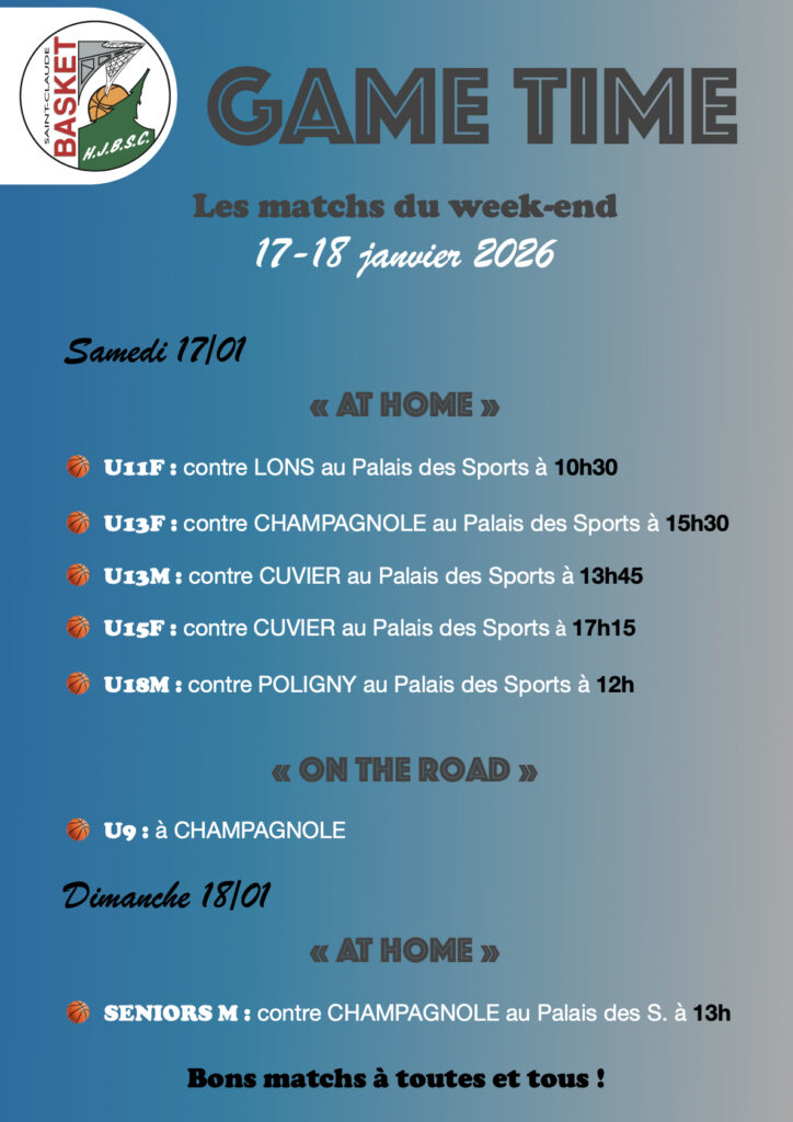 Programme du Week-end du 17-18 jan. 2026