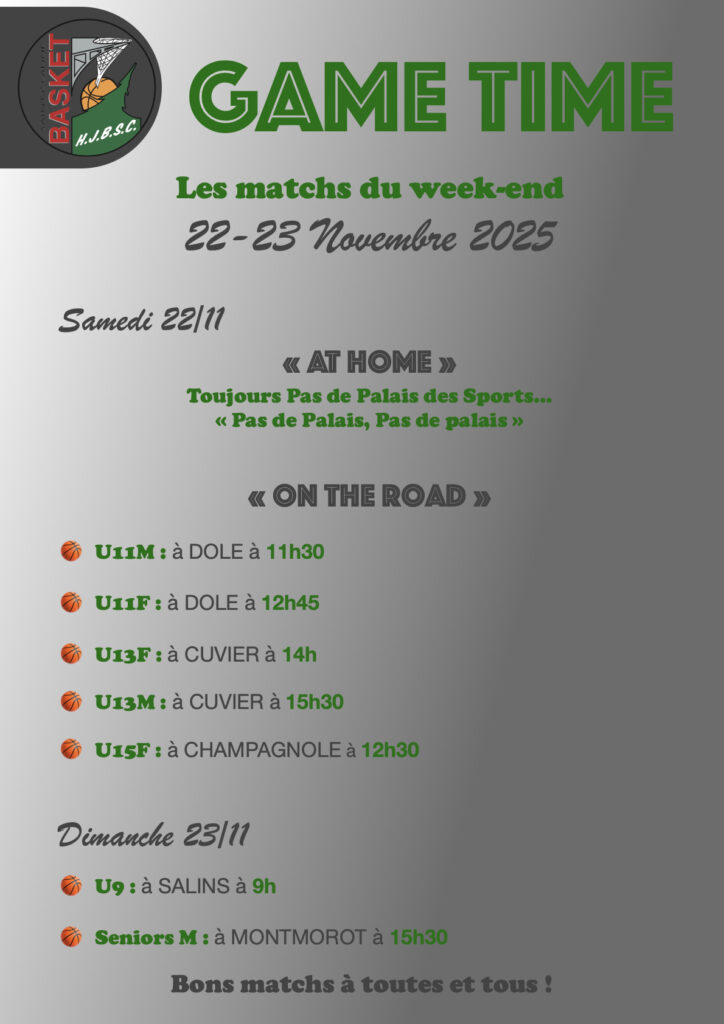 Voici le programme de nos équipes engagées ce week-end.