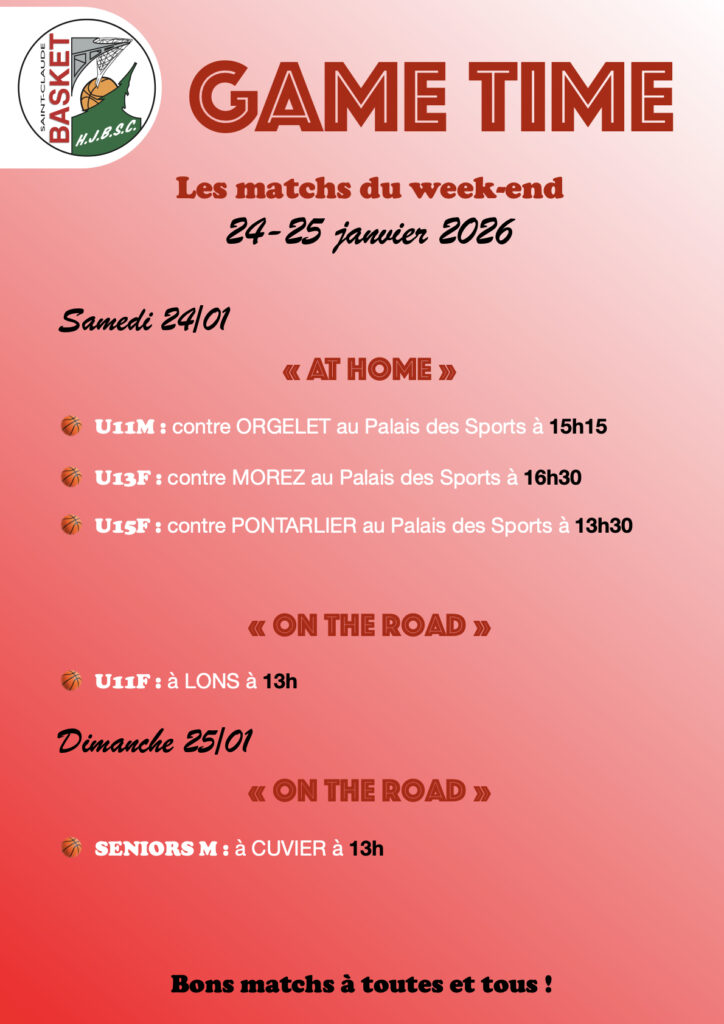 3 de nos équipes occuperont les terrains sanclaudiens samedi après-midi et 2 équipes se déplaceront ce week-end.