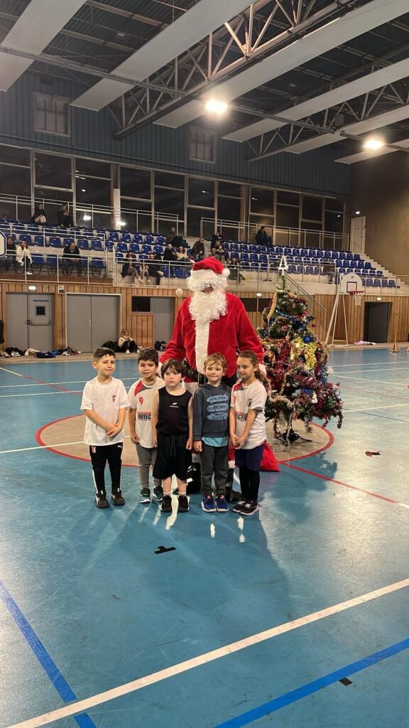 Nos jeunes ont pu faire un petit peu de basket avec des exercices ludiques avant le goûter et l’arrivée tant attendue du barbu au costume rouge!!